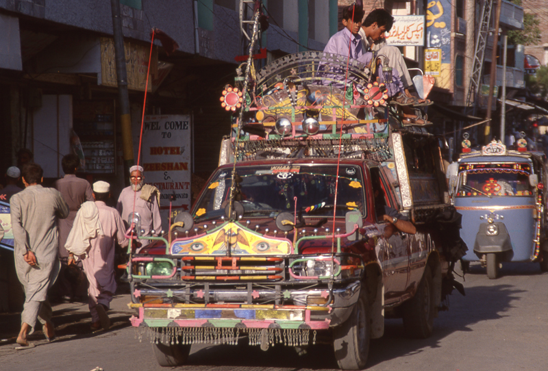 Notre première étape est Peshawar. Après le calme des montagnes kirghizes, le bruit et l’agitation de la ville sont difficiles à supporter. Nous continuons vers la vallée des Kalashs près de Chitral à une altitude de 2 500 mètres. Ce peuple méconnu a conservé ses coutumes, ses rites animistes et son identité unique au monde depuis près de